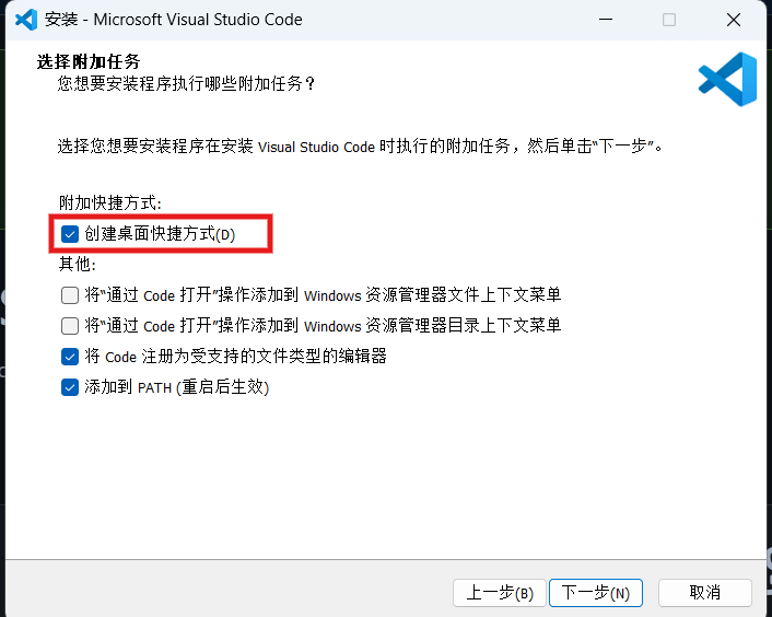 勾选创建快捷方式,便于后续启动VScode