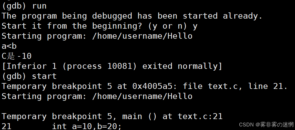 run (r ) | 从程序开头运行,直到断点 / 结束 / 崩溃 | 需要完整运行程序到断点时 |