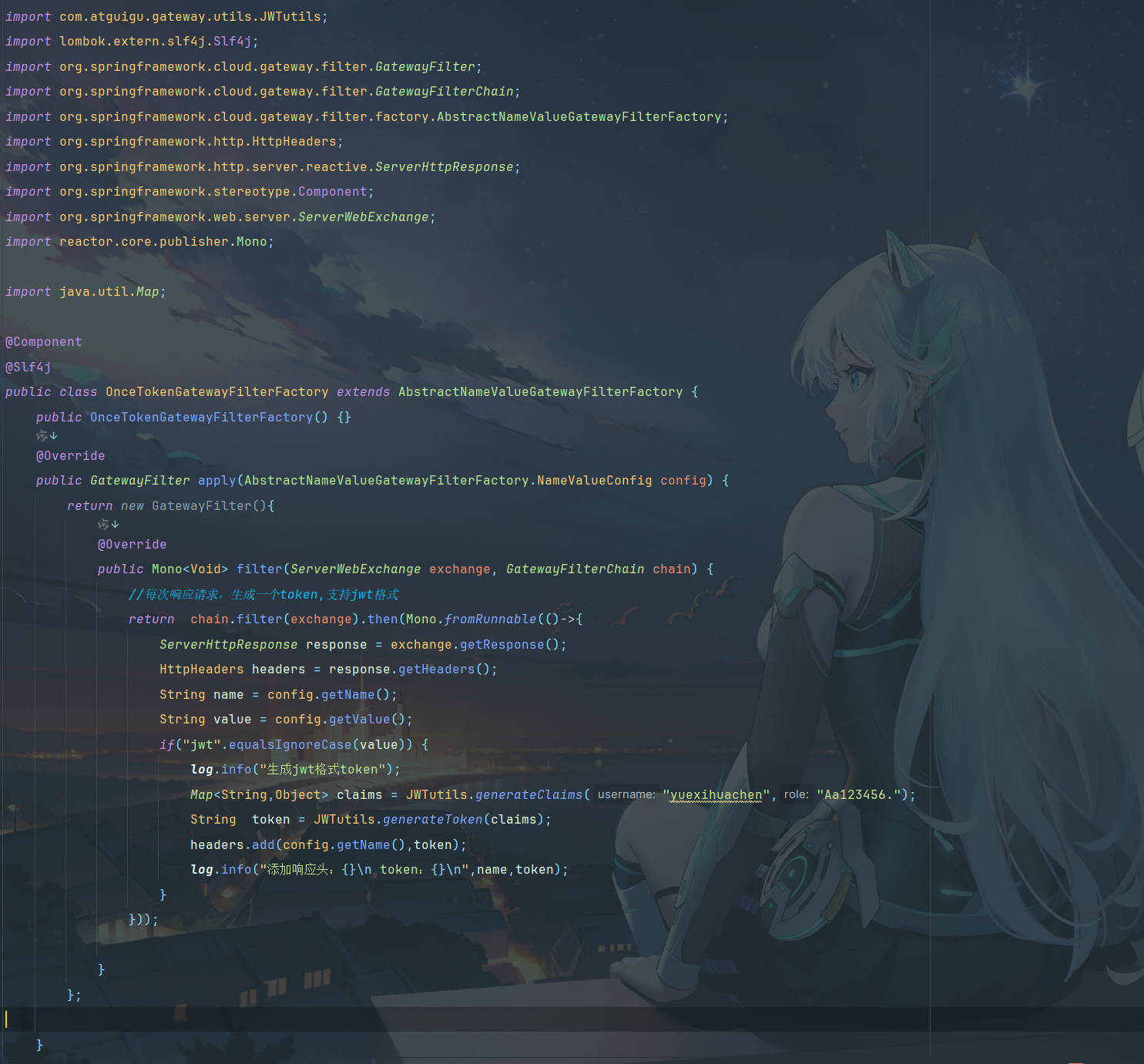 创建 OnceTokenGatewayFilterFactory继承AbstractNameValueGatewayFilterFactory,并实现apply方法,编写相关逻辑