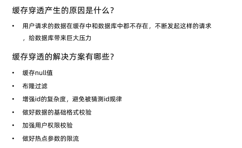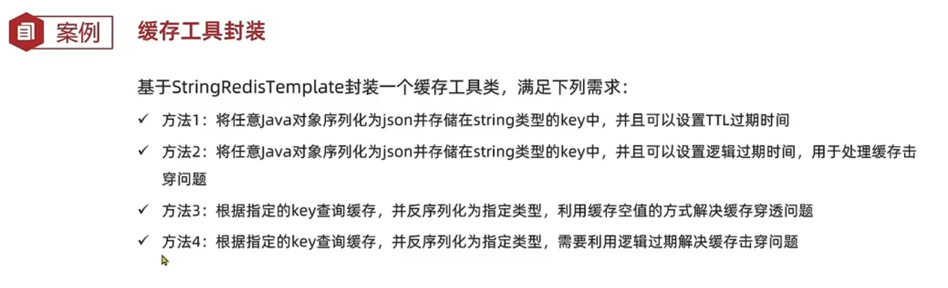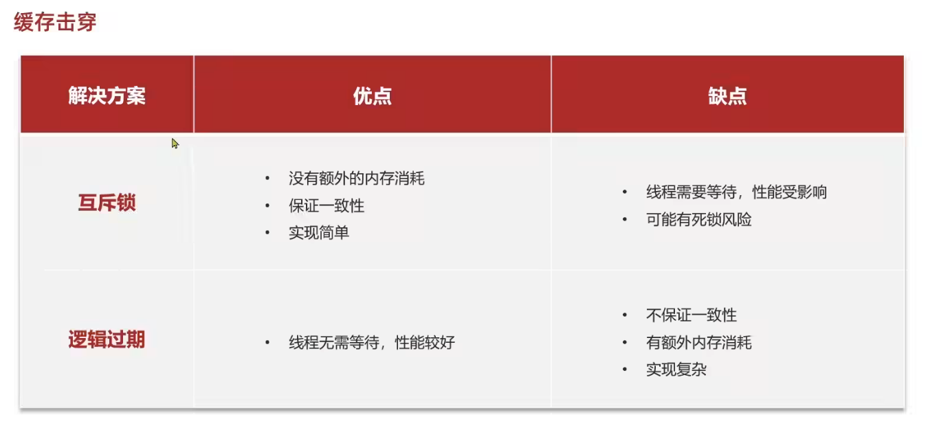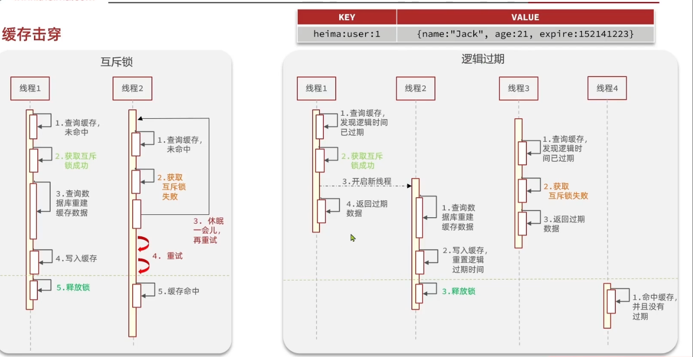 1.什么是缓存2.添加用户缓存3.缓存更新策略第一种情况发生概率大:更新数据库时间长,期间可能有很多线程操作缓存,操作缓存时间很短第二种情况发生概率小:只有恰好缓存过期,在操作缓存极短时间内更新了数据库才会数据不一致4.商铺5.缓存穿透 缓存和数据库都没有该数据缓存空对象布隆过滤5.1解决商铺查询的缓存穿透问题6.缓存雪崩 大量key同时失效7.缓存击穿(热点key失效)互斥锁逻辑过期7.1 利用互斥锁解决缓存击穿问题7.2基于逻辑过期解决缓存击穿问题8.封装redis工具类9.总结