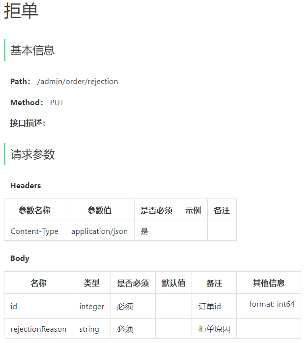 5、拒单 - PUT接口