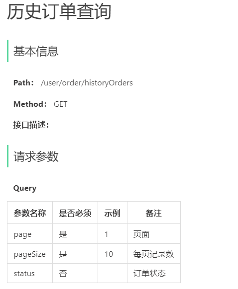 1、查询历史订单 - GET接口