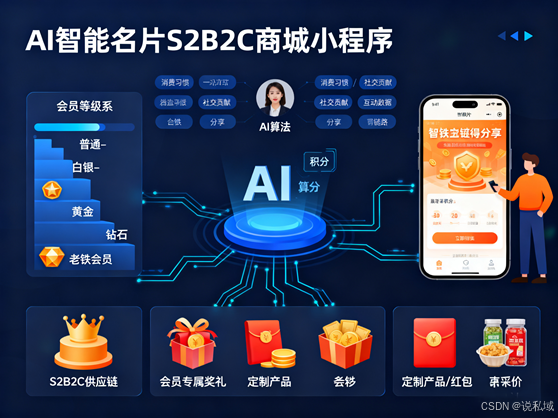 在私域流量运营竞争日益激烈的背景下,“老铁用户”作为高信任度、高复购率、高传播力的核心用户群体,成为商家实现可持续增长的关键。定制开发开源AI智能名片S2B2C商城小程序(以下简称“AI-S2B2C小程序”)凭借AI技术赋能、开源灵活适配、S2B2C供应链整合及智能名片触达等核心优势,为会员制运营提供了创新载体。本文以“老铁用户”培养为核心目标,分析AI-S2B2C小程序会员制的设计逻辑与运营路径,提出通过“合理等级体系搭建—消费/分享升级驱动—信任依赖深化—红包奖品激励”的闭环运营模式,将普通用户转化为“老铁用户”,为商家提升用户粘性、实现业绩增长提供实践方案。
