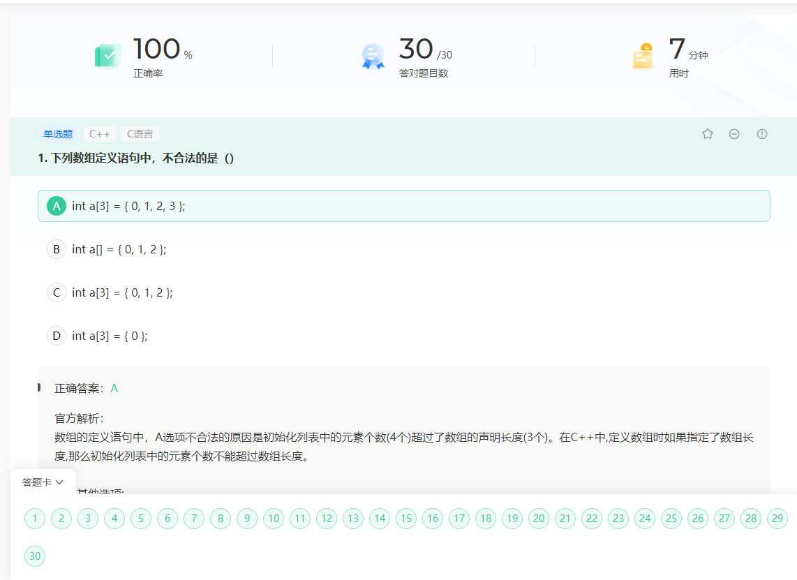 3. 不指定长度时,数组长度由初始化列表的元素个数决定知识点:C++、C语言