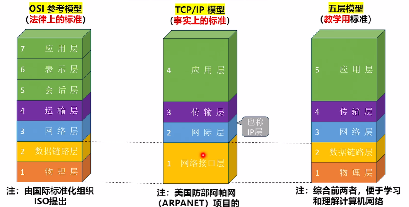 删除了表示层与会话层:并不是所有网络应用都需要数据格式转换、会话管理功能。如果真的需要这些功能,可以通过应用层的特定协议去实现。