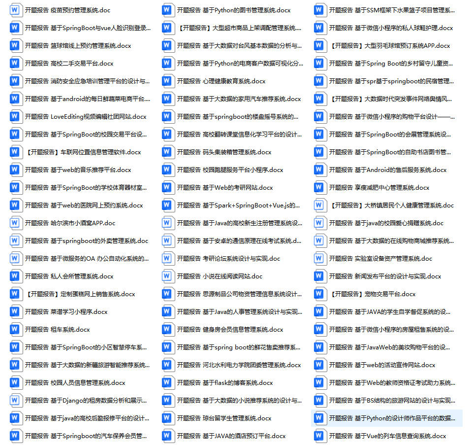 以上是某同学的毕业设计答辩的过程,如果你现在还没有参加答辩,还是开题阶段,已经选好了题目不知道怎么写开题报告,可以下面找找有没有自己符合自己题目的开题报告内容,列表中的开题报告都是往届真实的开题报告,可发送使用或参考。文末或底部来联xi可免费获取