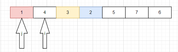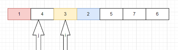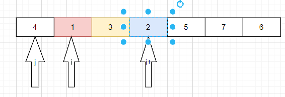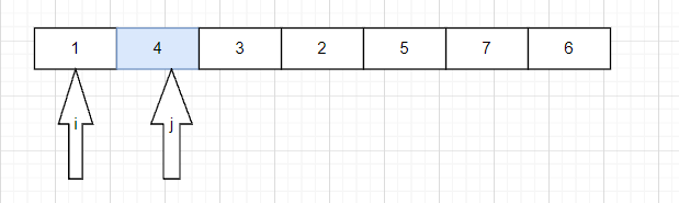 开始的时候我们定义一个最小值j,j指针指向该值的序号如图j=0;定义一个新指针i去寻找剩余的值中的最小值。