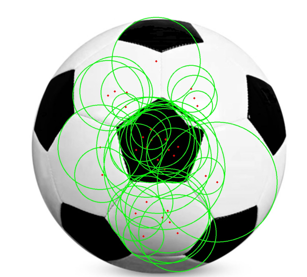 cimg = cv2.cvtColor(img, cv2.COLOR_GRAY2BGR) # 转彩色(用于绘制彩色圆)# 3. 霍夫圆变换(调整参数以适配足球特征)
