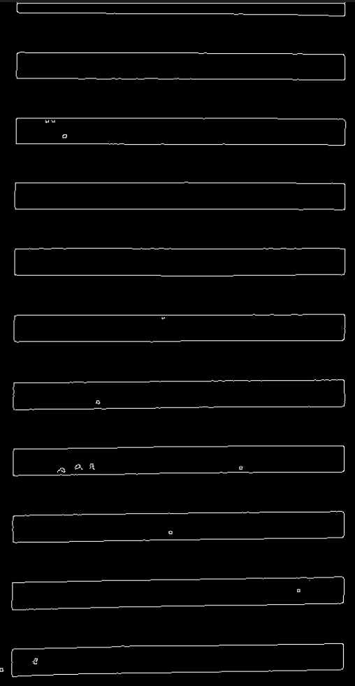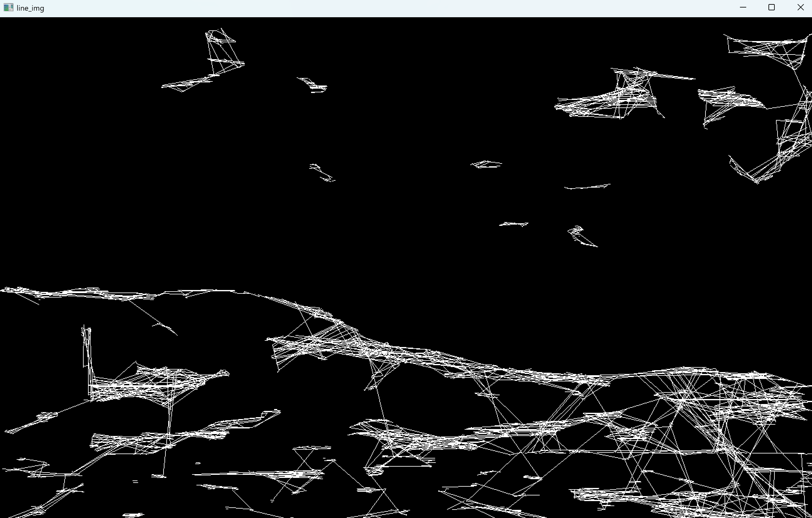 for line in lines:for x1, y1, x2, y2 in line:cv2.line(line_img, (x1, y1), (x2, y2), 255, 1)cv2.imshow("line_img", line_img)