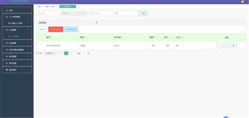 文件管理页面是用户进行个人文件资源管理的核心区域。在此页面,用户可直观查看自己上传的所有文件列表信息,并执行文件的下载、删除、重命名等操作。通过清晰的分类展示与便捷的操作交互,该页面有效提升了用户文件管理的直观性与便捷性。,系统还提供了文件共享与权限设置功能,帮助用户更好地管理自己的文件资源。