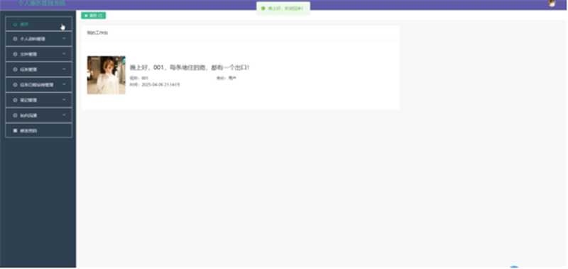 首页是用户进入系统的第一站,承载着展示系统核心功能与引导用户操作的重要使命。通过精心设计的布局与内容展示,首页向用户直观呈现了系统的各项功能入口与最新动态信息。用户可通过简洁明了的导航菜单快速定位所需功能区域,同时,首页还提供了个性化推荐与消息提醒功能,帮助用户及时获取关注内容,提升用户体验。