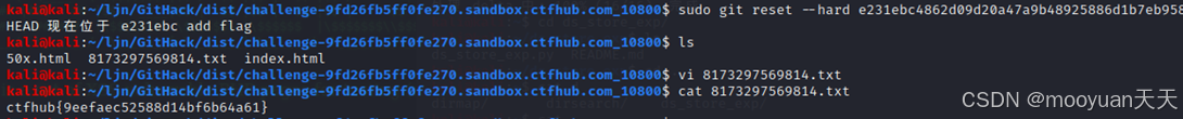 执行git reset将代码切换为add flag版本的code,如下所示此方法同样成功获取到flag。
