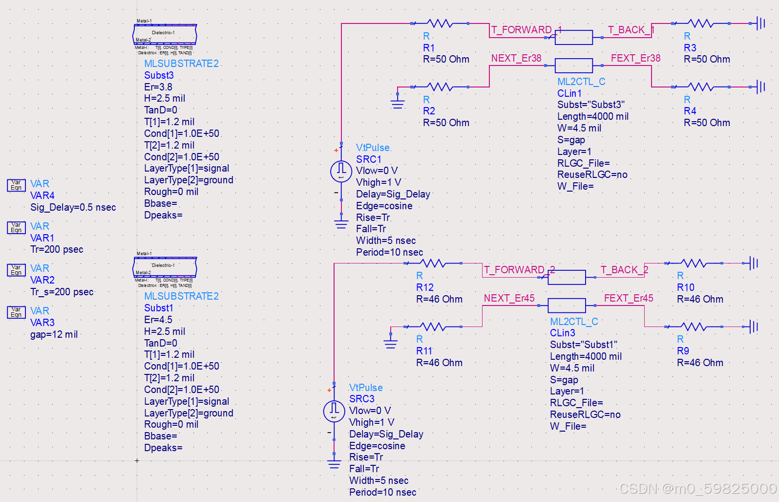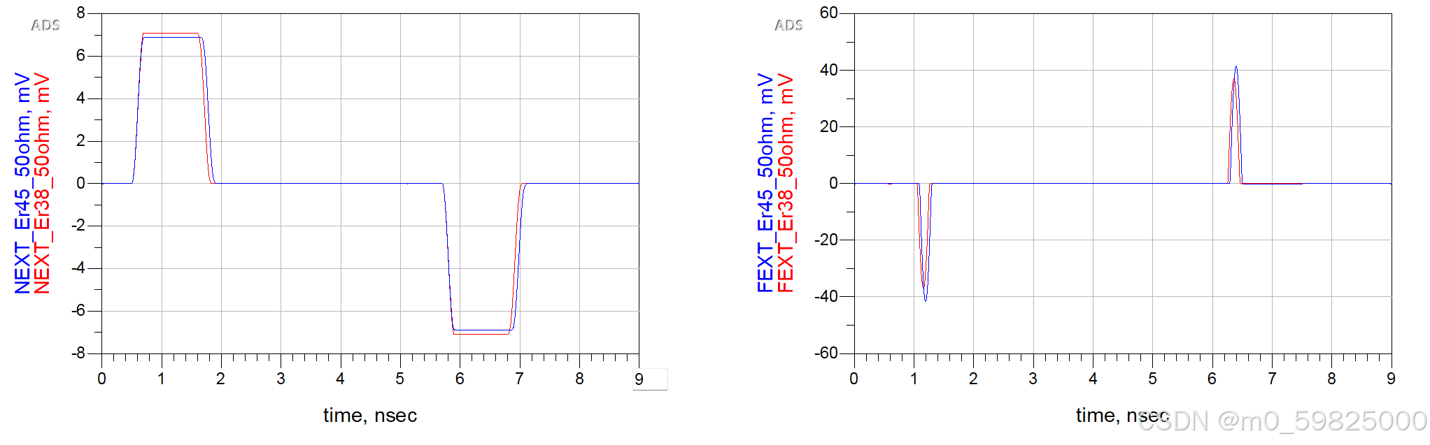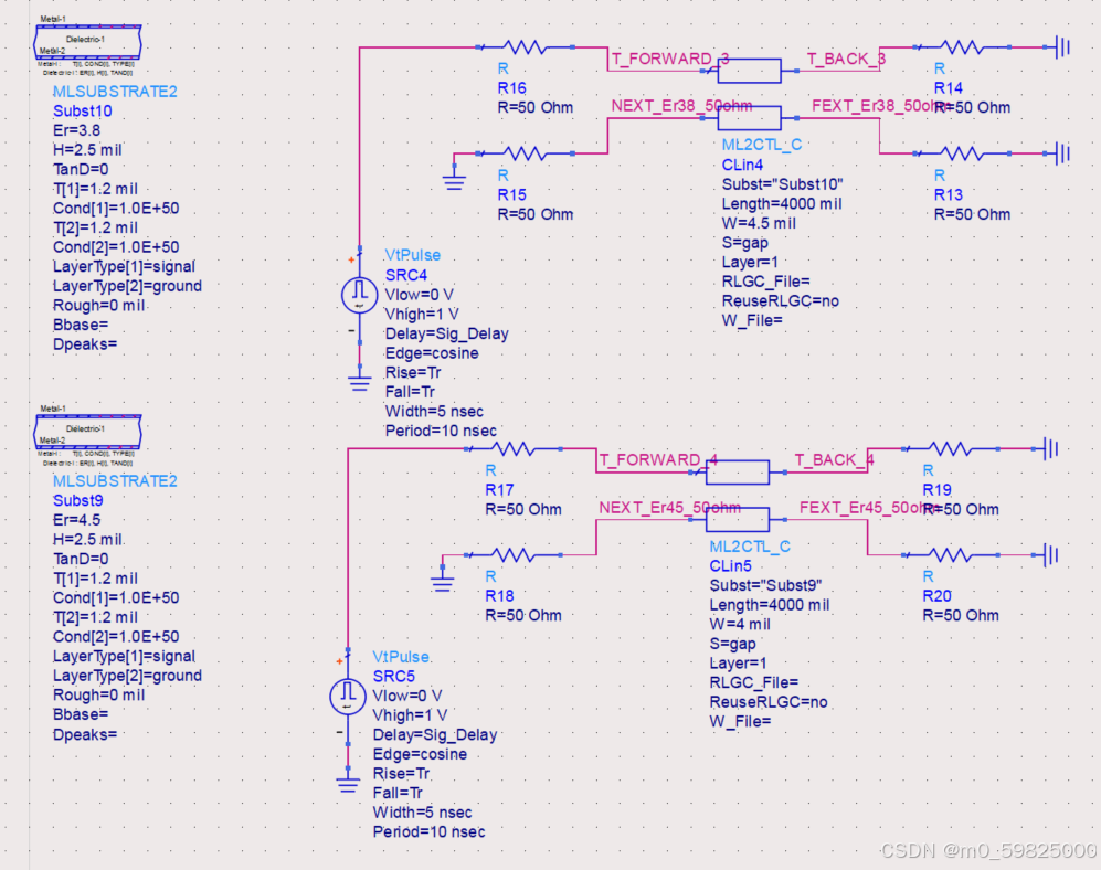 介电常数本身对对串扰的影响微乎其微。使用ADS仿真在不考虑阻抗控制的情况下,在统一线宽下,不同介电常数Er对串扰的影响:
