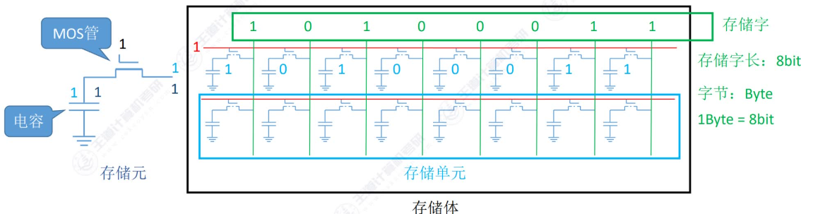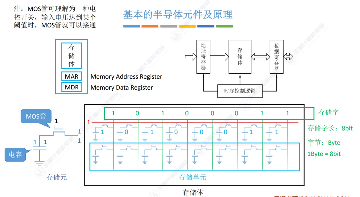 主存储器是由存储体,数据寄存器和地址寄存器,三者通过时序控制逻辑有条不紊的进行着,然后存储体由存储单元构成,存储单元由存储元构成,存储体是主要用来存储0-1数据的。