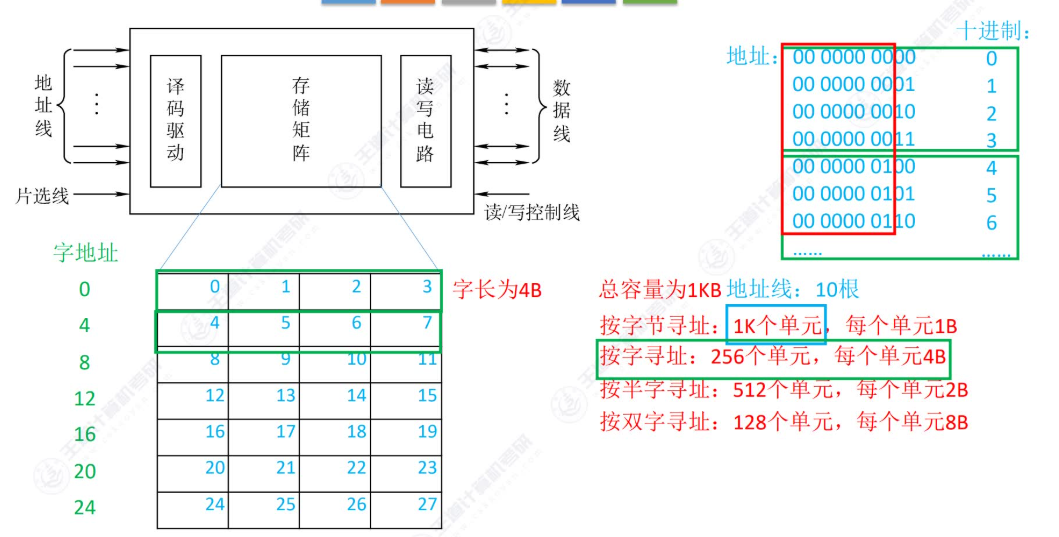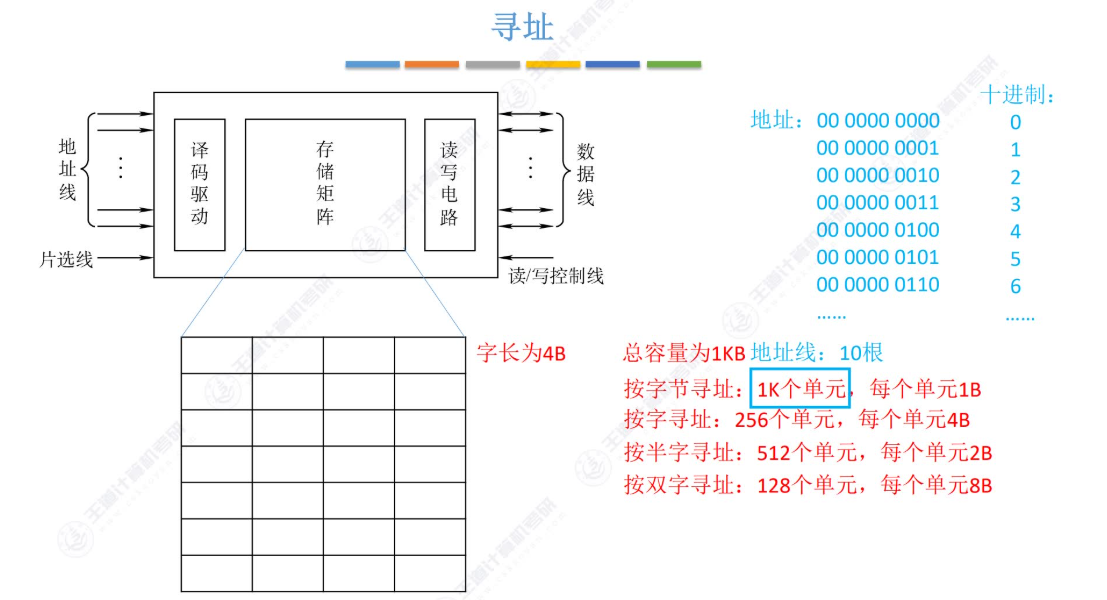 字节进行寻址,要理解字节是什么,字节就是8bit,那么一个小格子表示8bit,以1K为为总容量,那么就是有1K个单元,每个单元的大小为1B,如今的绝大多数的计算机都是按照字节进行寻址