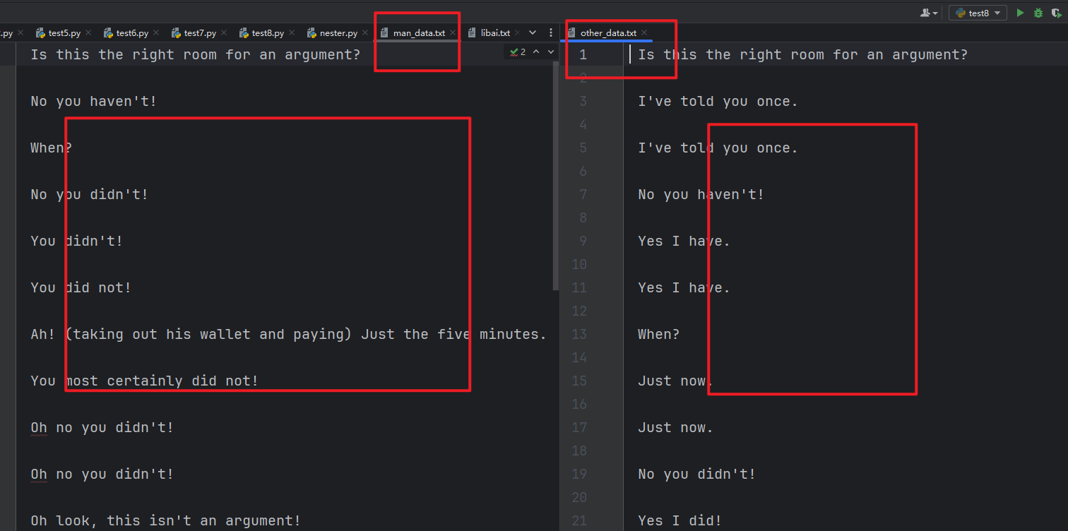 try:with open('man_data.txt','rb') as man_file,open('other_data.txt','rb') as other_man_file:new_man=pickle.load(man_file) ### 使用pickle处理导入new_other_man=pickle.load(other_man_file) ### 使用pickle处理导入