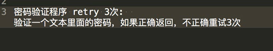 try:with open('secret','rt') as contain:while True:contain.seek(0)sec=input('please input secret:')line=contain.readline()if i==3:print('you input agin greater than 3 lines')breakelse:if line==sec:print('right login to succcess!!!!')breakelse:print('please agin you have {} chance'.format(3-i))i+=1