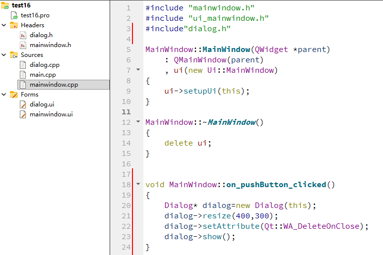 其实和QWidget,QMainWindow的项目差不多了太多。只不过是换成了QDialog而已。