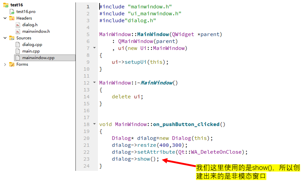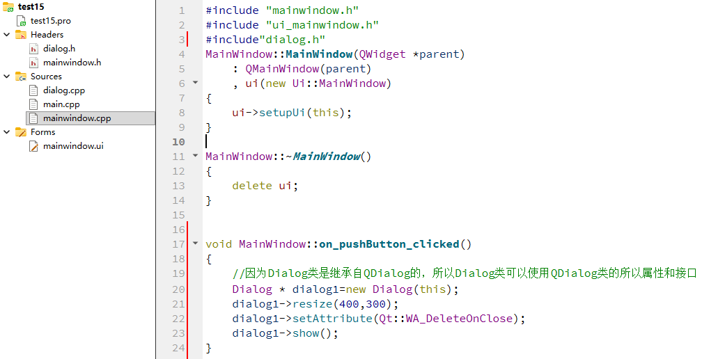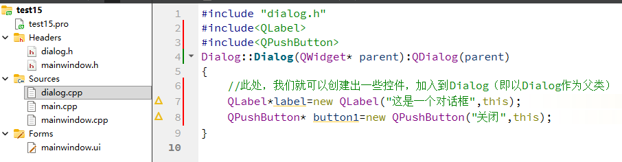 实际开发中,更多的情况,往往不是直接在创建项目的时候继承自 QDialog,而是在代码中,创建额外的类,让额外的类继承自 QDialog