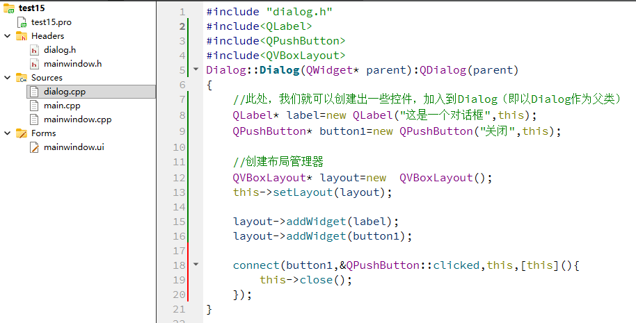总体来说,基于 QDialog 作为父类创建出来的程序窗口和之前通过 QWidget ,QMainWindow创建出来的非常相似的。