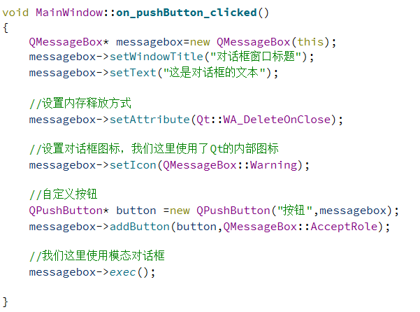 (即主窗口QMainWindow),这样当主窗口QMainWindow被销毁时,所有关联的对话框也会被一并销毁,从而避免最严重的内存泄漏。