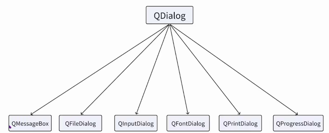 Qt常 ⽤的内置对话框有:QFiledialog(⽂件对话框)、QColorDialog(颜⾊对话框)、QFontDialog (字体对话框)、QInputDialog(输⼊对话框)和QMessageBox(消息框)。