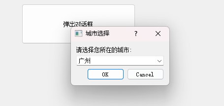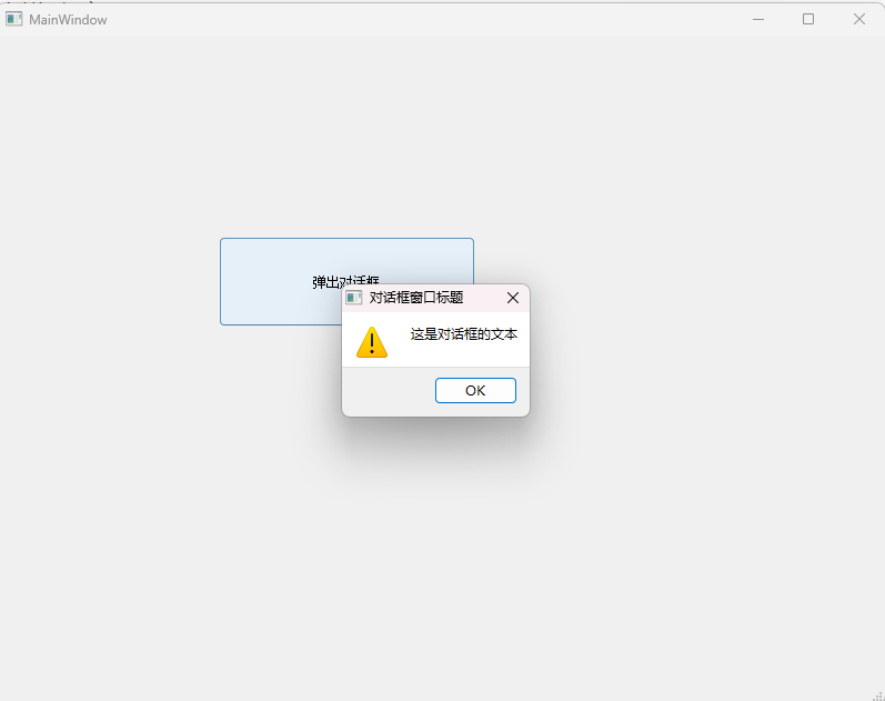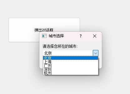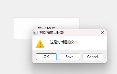在这个例子中,我们通过点击按钮,弹出一个对话框。