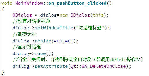 大家不要忘了QDialog是继承自QWidget,那么我们的QDialog可以使用QWidget的所有属性和方法。