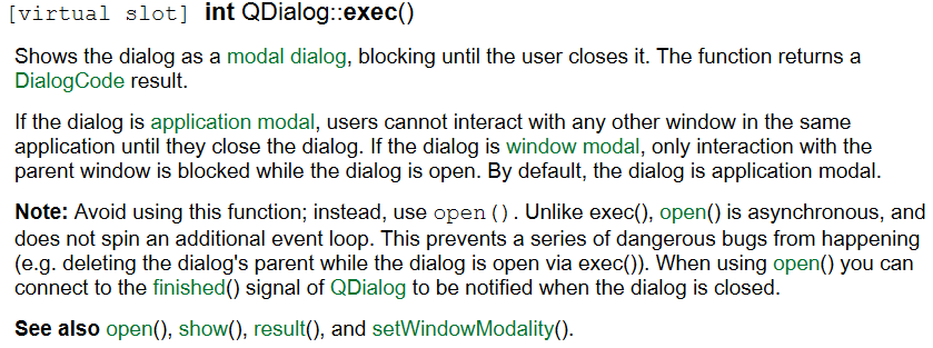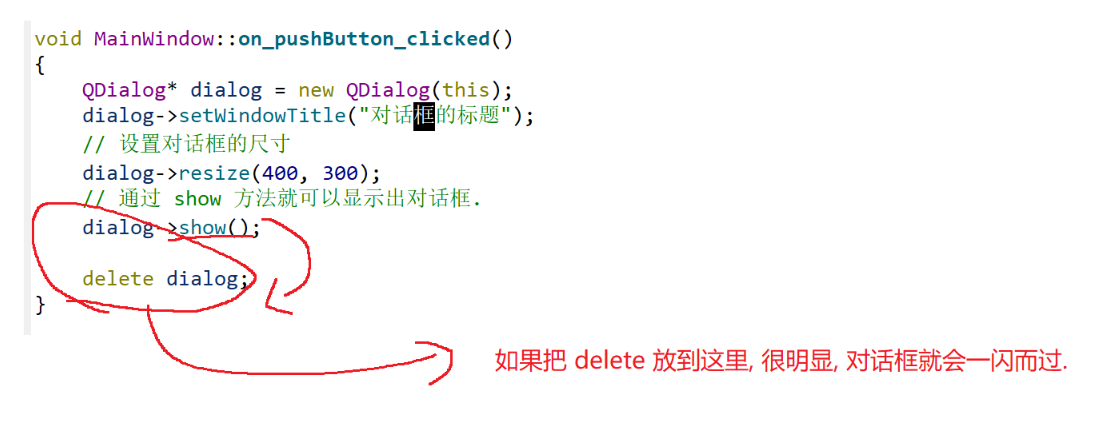 这会导致一个潜在的问题:如果用户反复点击按钮,程序中就会不断累积 QDialog