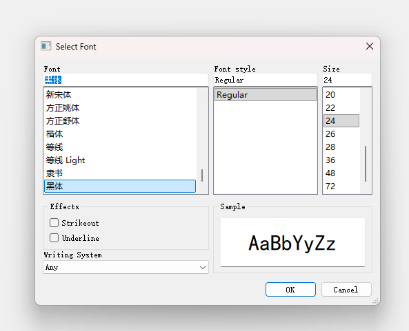 白话:指定字体的特定变体。比如一个字体家族可能有 “Regular”(常规)、“Light”(细体)、“Condensed”(紧缩)等多种样式。这里指定为 “Regular”,就是使用最常规的那一款。如果留空字符串