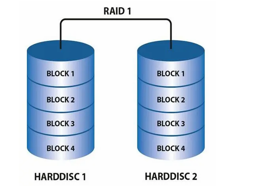 安全性高于一般的磁盘,但效率大大下降,用相同的磁盘量来备份数据