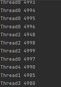 import java.util.concurrent.LinkedBlockingQueue;public class Demo5 {//创建简易的线程池static class MyThreadPool {//创建一个阻塞队列private BlockingQueue<Runnable> queue = new LinkedBlockingQueue<>();public MyThreadPool(int n) {for (int i = 0; i < 5; i++) {Thread t1 = new Thread(() -> {while (true) {try {Runnable task = queue.take();//在当前线程中执行该任务task.run();} catch (InterruptedException e) {throw new RuntimeException(e);}}},"Thread" + i);t1.start();}}public void submit(Runnable task) throws InterruptedException {queue.put(task);}}//往线程池中添加任务public static void main(String[] args) throws InterruptedException {MyThreadPool pool = new MyThreadPool(5);for (int i = 0; i < 5000; i++) {int id = i;pool.submit(()->{Thread cur = Thread.currentThread();System.out.println(cur.getName() +" " + id);});}Thread.sleep(1000);}