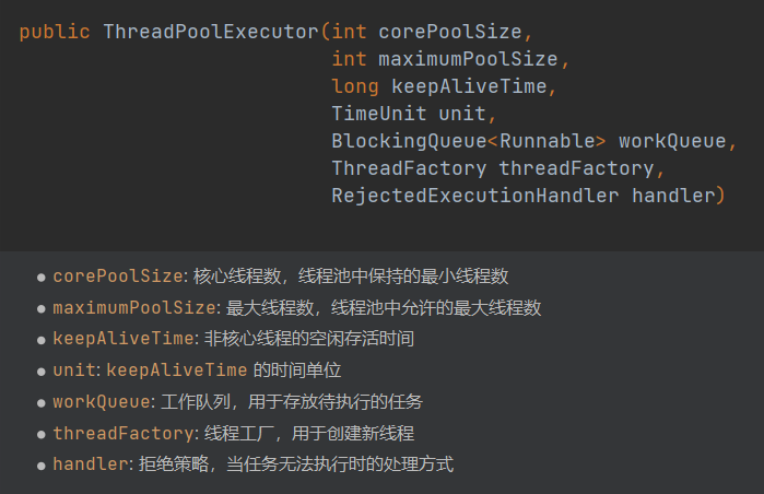 ThreadPoolExecutor 是Java中的线程池实现类,共七个参数: