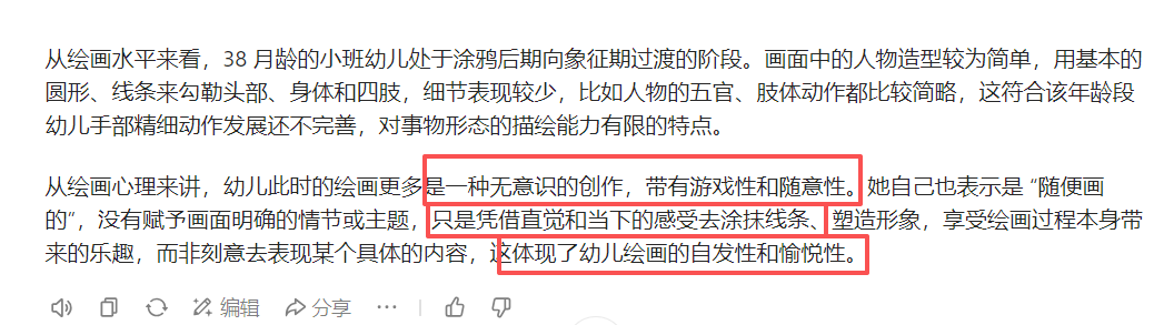 和家长沟通时,提到孩子的绘画能力超前(涂鸦转向几何图形)