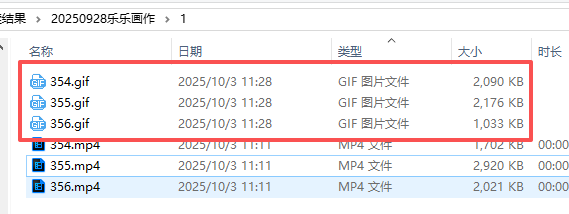 if __name__ == "__main__":path = r'D:\test\20桌面素材\20250928乐乐画作\1'# 首先检查文件夹是否存在if not os.path.exists(path):print(f"错误: 路径不存在 - {path}")else:print(f"找到文件夹,包含文件: {os.listdir(path)}")convert_mp4_to_gif(input_folder=path,scale=0.3, # 更小的缩放比例fps=5, # 更低的帧率colors=64 # 更少的颜色)
