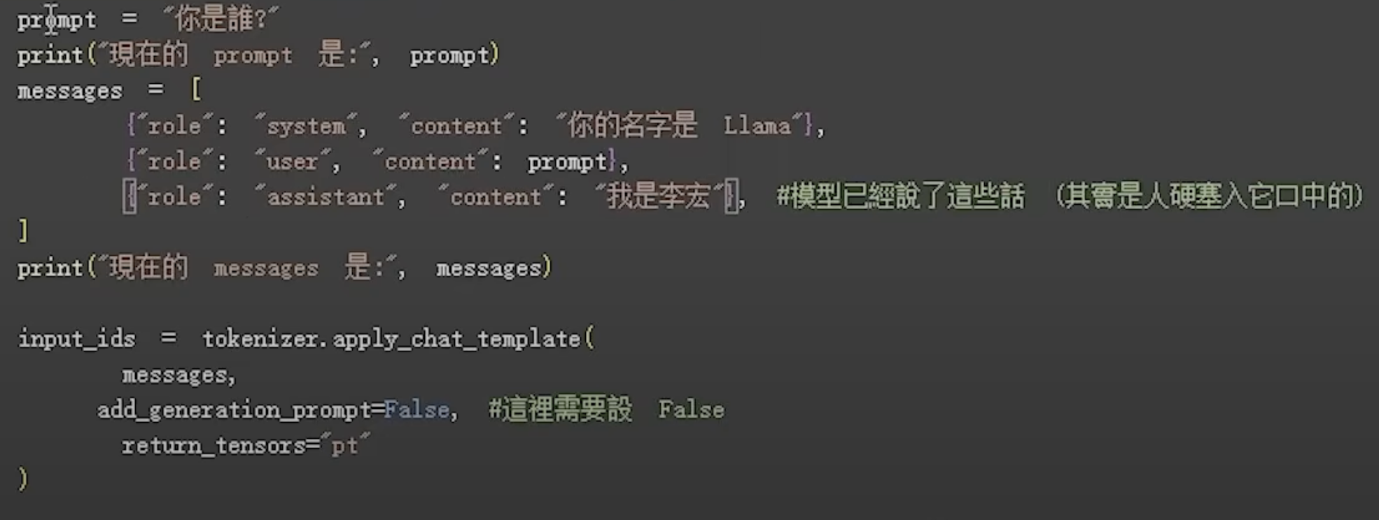 有三种角色:1.system:开发者放的prompt;2.user:用户说的话3.assistant:LLM说的话
