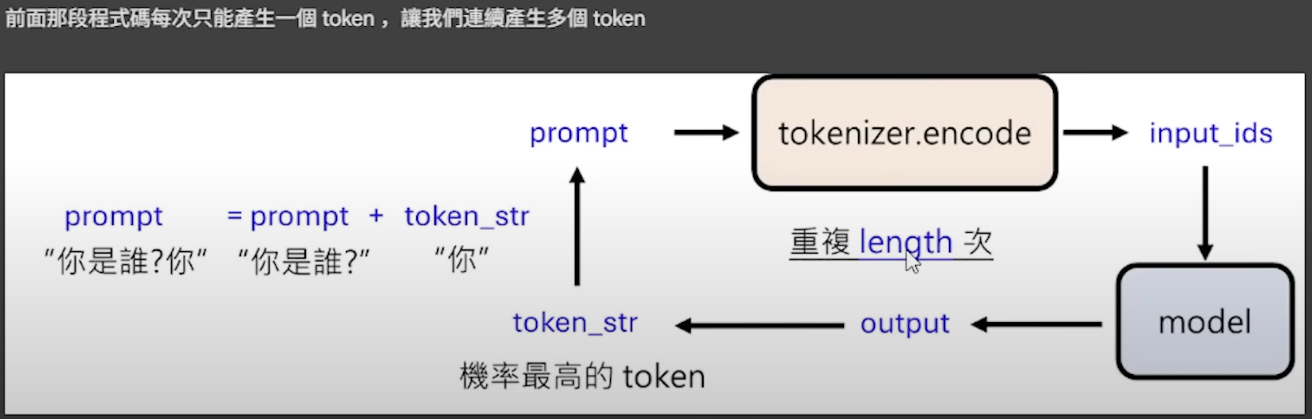 以上属于llm内部的工作流程:把刚刚猜出来的token作为新的输入贴在老的输入后面,再交给LLM重复循环这个操作,当然不是死循环操作,可以指定循环次数