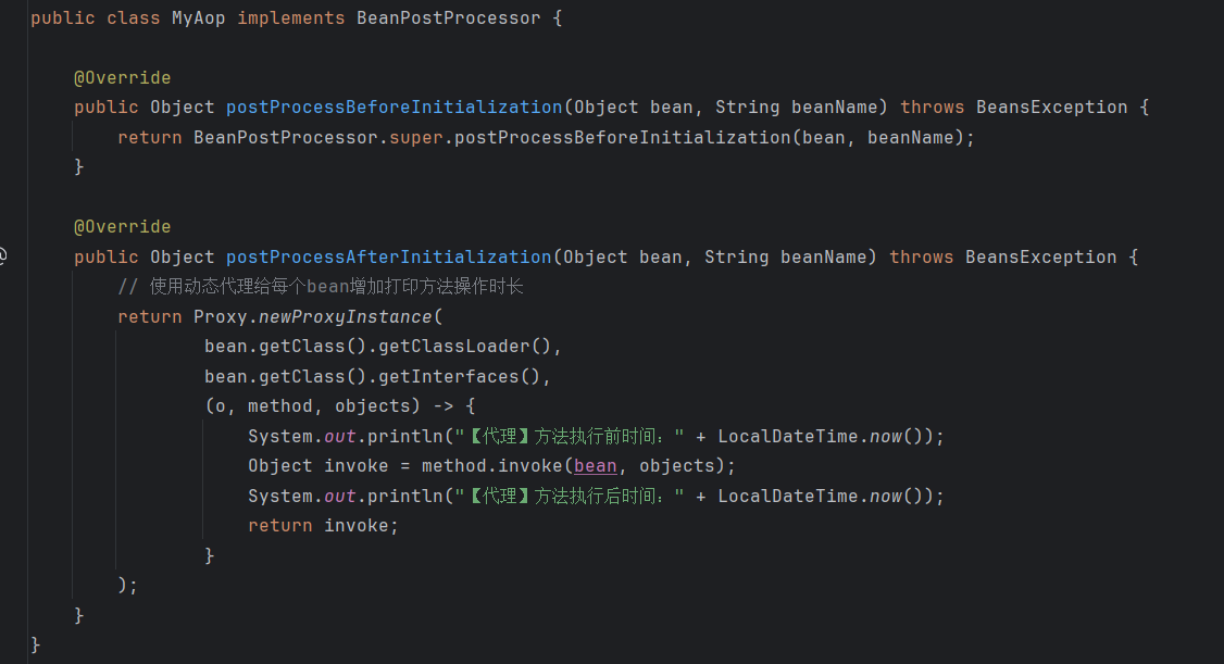 Spring的后处理器是Spring对外开发的重要扩展点,允许我们介入到Bean的整个实例化流程中来,以达到动态注册BeanDefinition,动态修改BeanDefinition,以及动态修改Bean的作用。