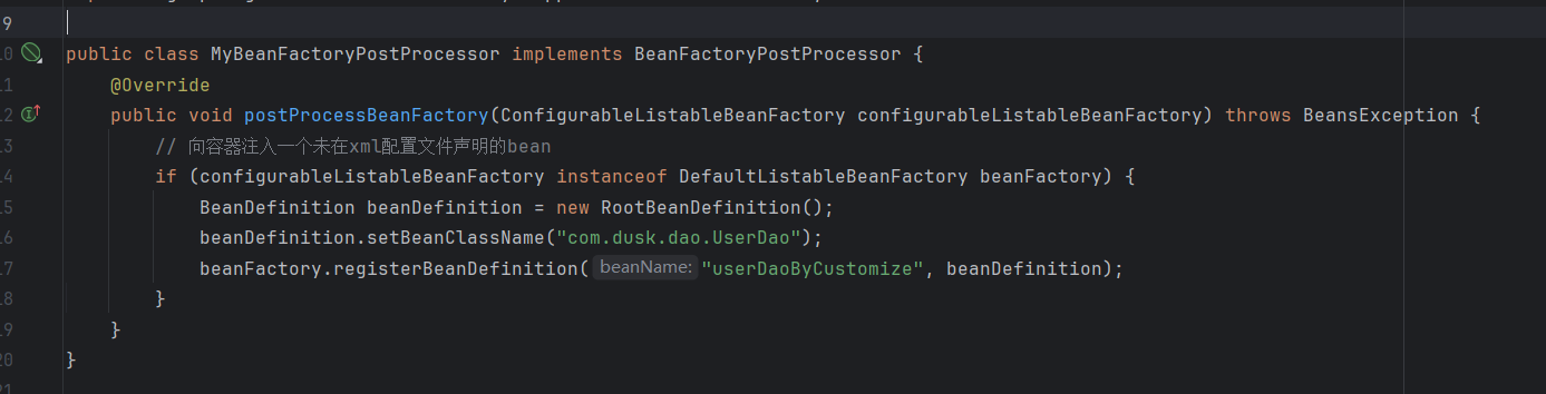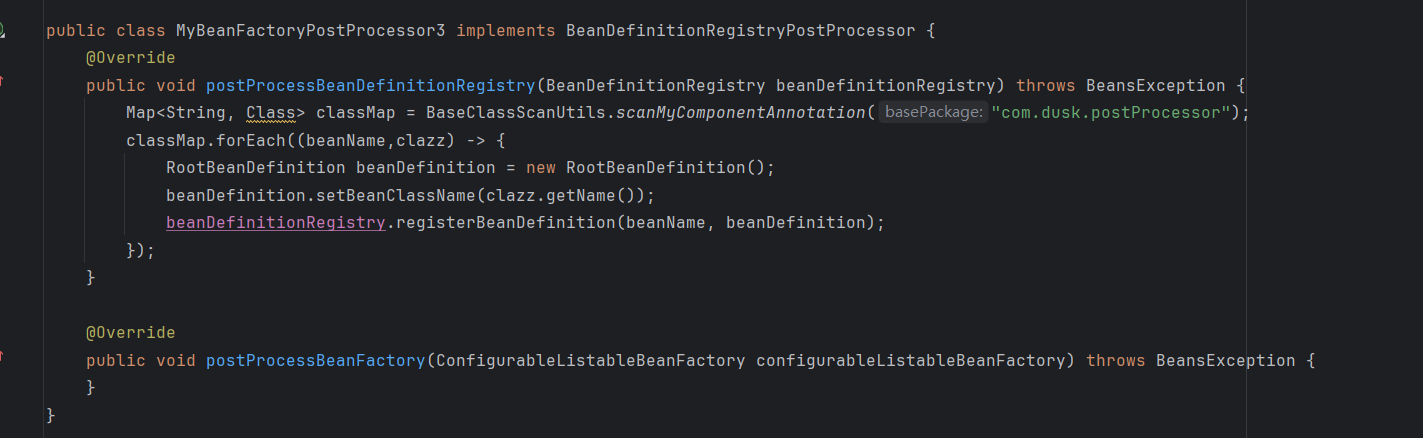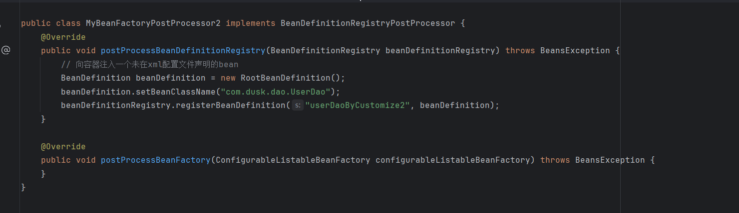 或者第二种方案,实现BeanDefinitionRegistryPostProcessor接口