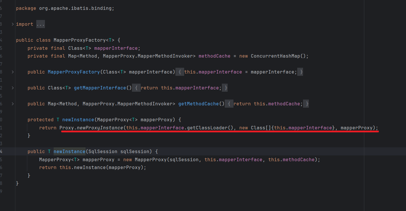 接着spring去创建MapperFactoryBean,将sqlSessionFactory注入到mapperFactoryBean中,调用接口FactoryBean的实现方法getObject,通过jdk的动态代理创建一个实现了对应Mapper接口的代理对象