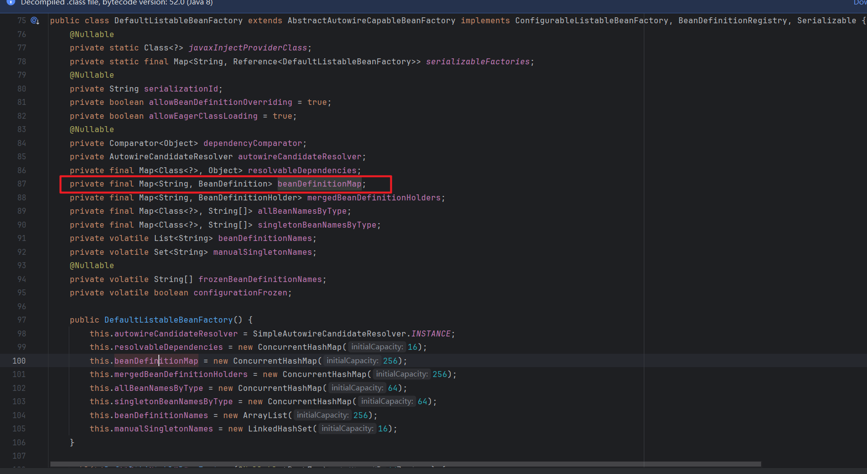 源码查看会发现,applicationContext实现类内部其实也包含beanFactory属性
