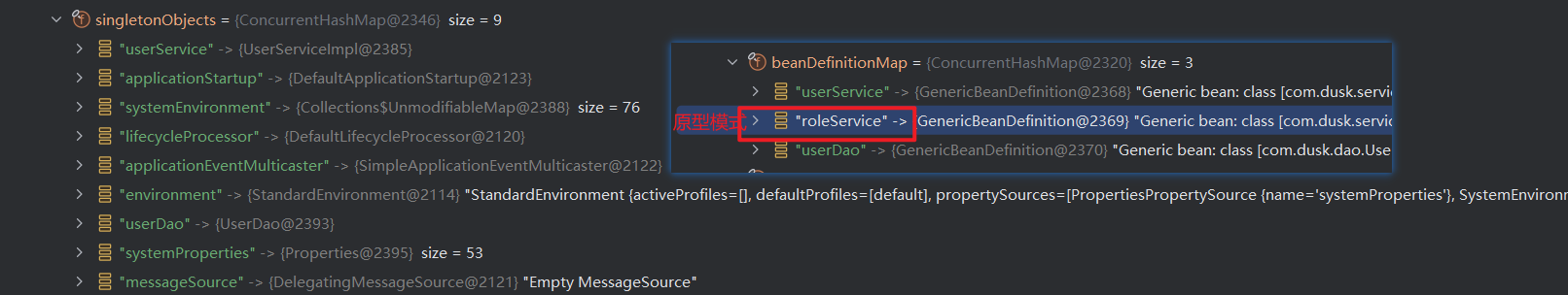 当设置bean的范围scope="prototype"时,就不会初始化在单例池中
