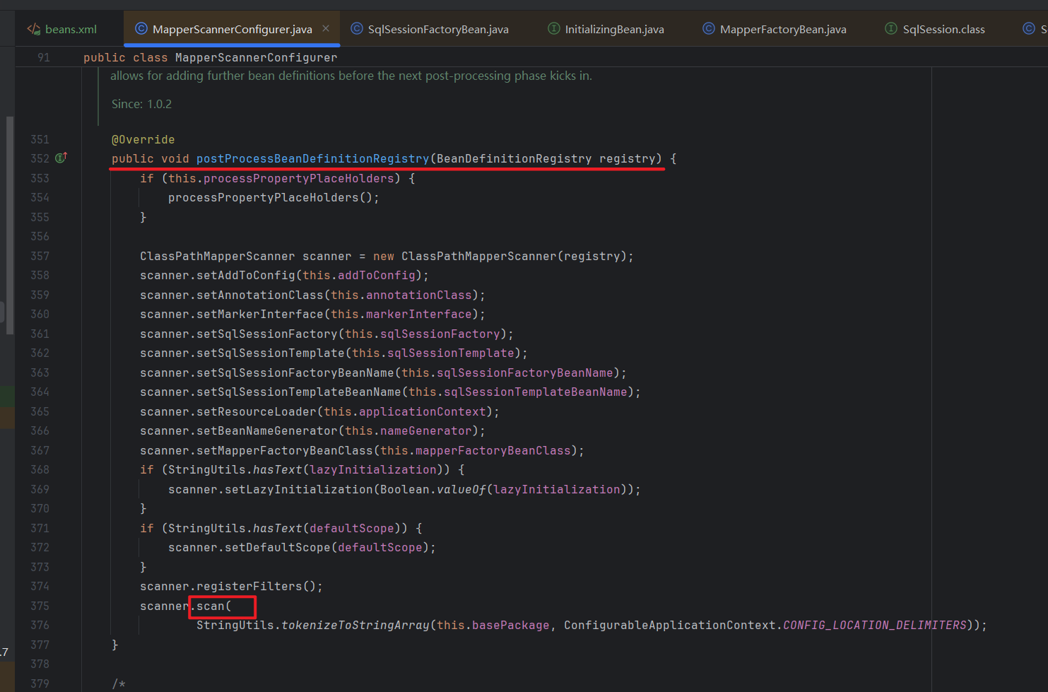 spring启动,触发MapperScannerConfigurer,MapperScannerConfigurer执行接口BeanDefinitionRegistryPostProcessor的实现方法postProcessBeanDefinitionRegistry
