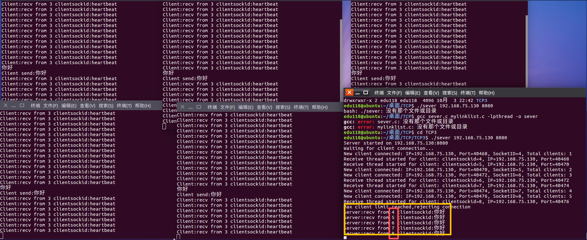 2.服务器代码在主函数的while循环中循环accept函数,连接一个客户就把该客户的信息插入到链表,并创建接收发送线程与客户端进行通信