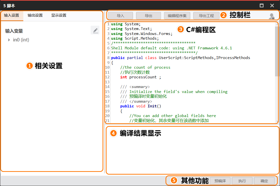 将脚本模块拖入流程编辑区后,双击该模块打开脚本编辑窗口。