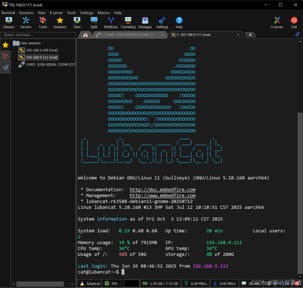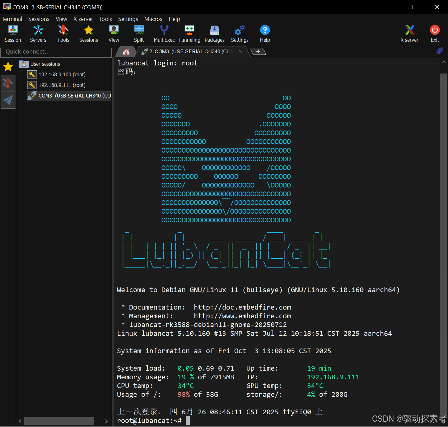 台式机ssh连接开发板:通过eth和上位机连接到了同一个网段
