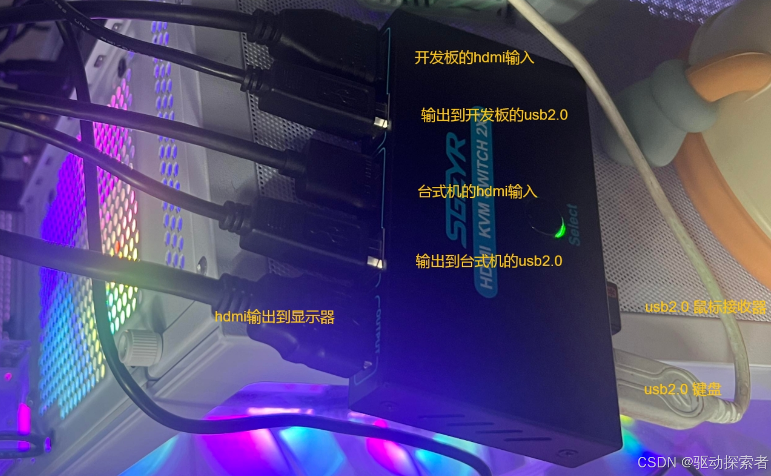 使用 usb & hdmi switch 一件将鼠标键盘显示器在开发板和台式机之间切换