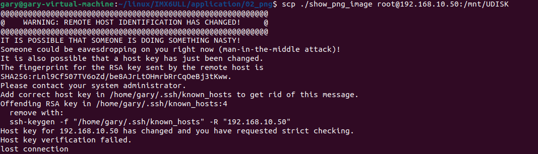 之后便可以重新和开发板进行ssh服务并且可以使用scp传输了