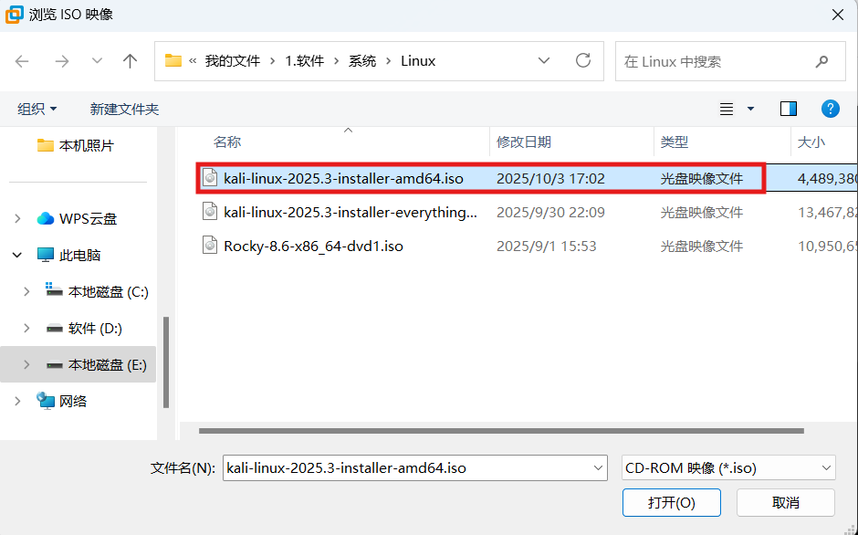 选中我们在KALI官网下载的镜像。