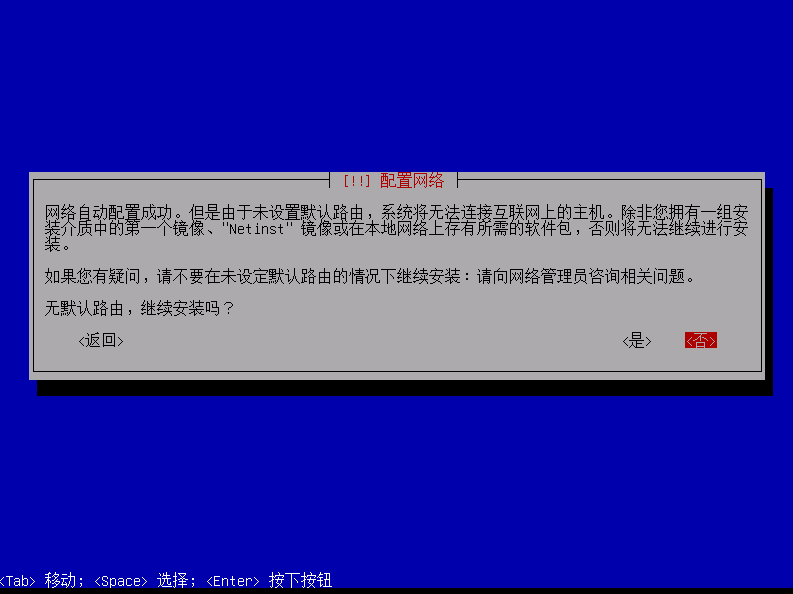 由于我在设置虚拟机时,将其网络模式设置为仅主机模式,因此在这里需要手动进行默认路由配置。